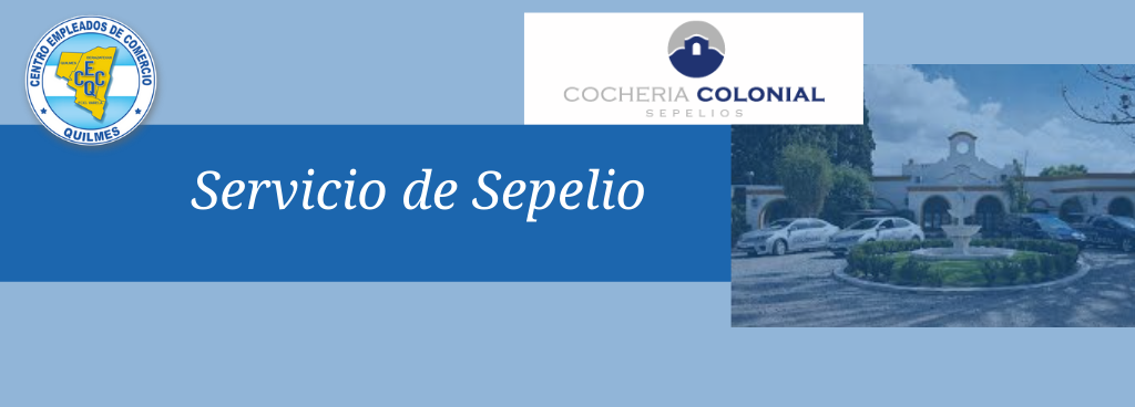 El afiliado al Centro de Empleados de Comercio Quilmes cuenta con el servicio de sepelio sin cargo en la Cocheria Colonial ubicada en Ruta 36 Nro 1267 Florencio Varela . Para mayor informacion comunicarse al 4250-2150 // 2487-6000 // 4255-2150 o por whatsapp al 113345-6145