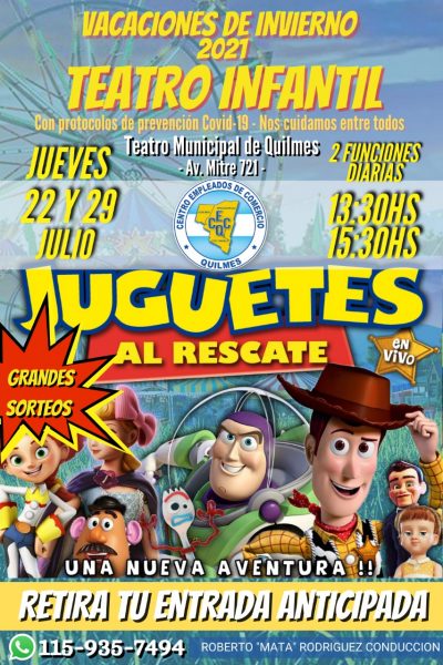 En estas Vacaciones de Invierno, no te pierdas el teatro infantil, la obra «Juguetes al Rescate» en el Teatro Municipal de Quilmes. ¡Grandes sorteos para los hijos de nuestros afiliados! Entradas disponibles en nuestras sedes Te esperamos!!