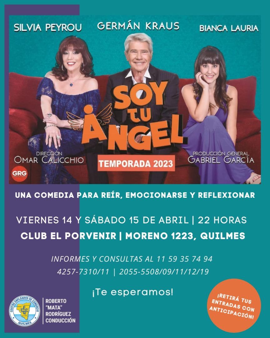 Este viernes 14 y sábado 15 de abril los invitamos a participar de una hermosa noche de teatro en Nuestro Club “El Porvenir” de la mano de German Kraus y Silvia Peyrou, que presentaran la obra “Soy tu Angel”