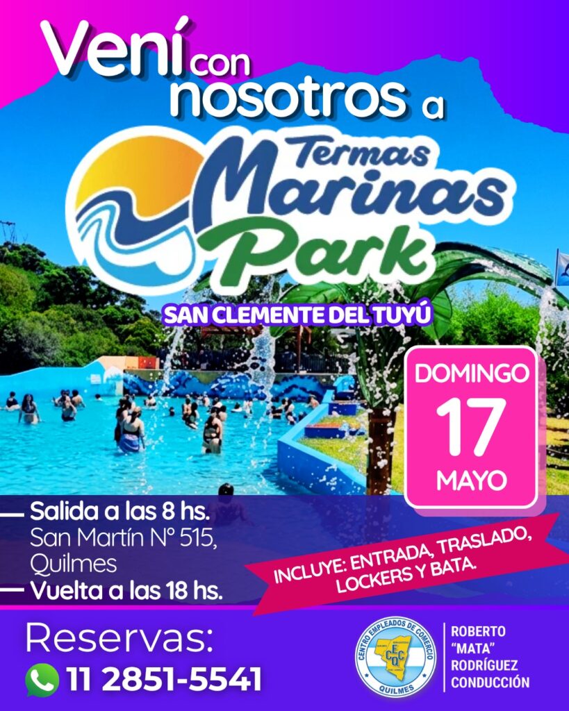 El Centro Empleados de Comercio de Quilmes invita a sus afiliadas y afiliados a participar de una jornada recreativa y de bienestar en el Termas Marinas Park, ubicado en la localidad de San Clemente del Tuyú.