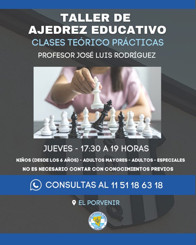 A PARTIR DE MAYO NUEVO TALLER mayo 4, 2025abril 13, 2023 por admin Nuevo taller de Ajedrez Educativo en el Club El Porvenir a partir del Jueves 4 de mayo Consultanos! haz click si queres ver otras actividades del club