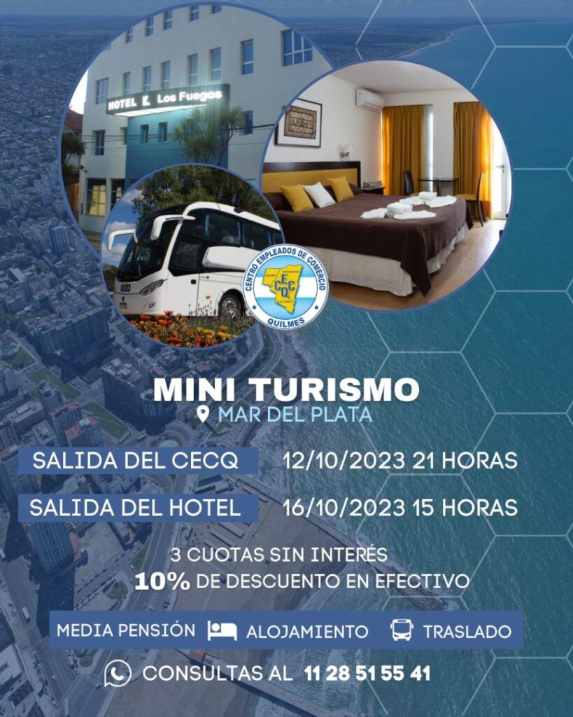 Nuevo viaje de Mini turismo a Mar del Plata. Traslado ida y vuelta, con media pensión